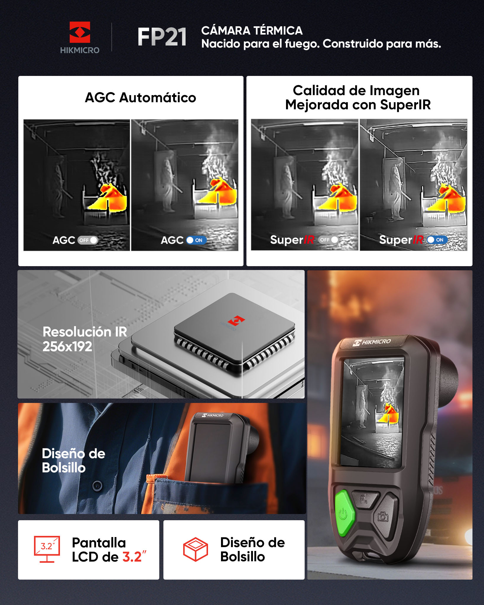 - Resolución térmica 256 x 191 (49.152 píxeles)