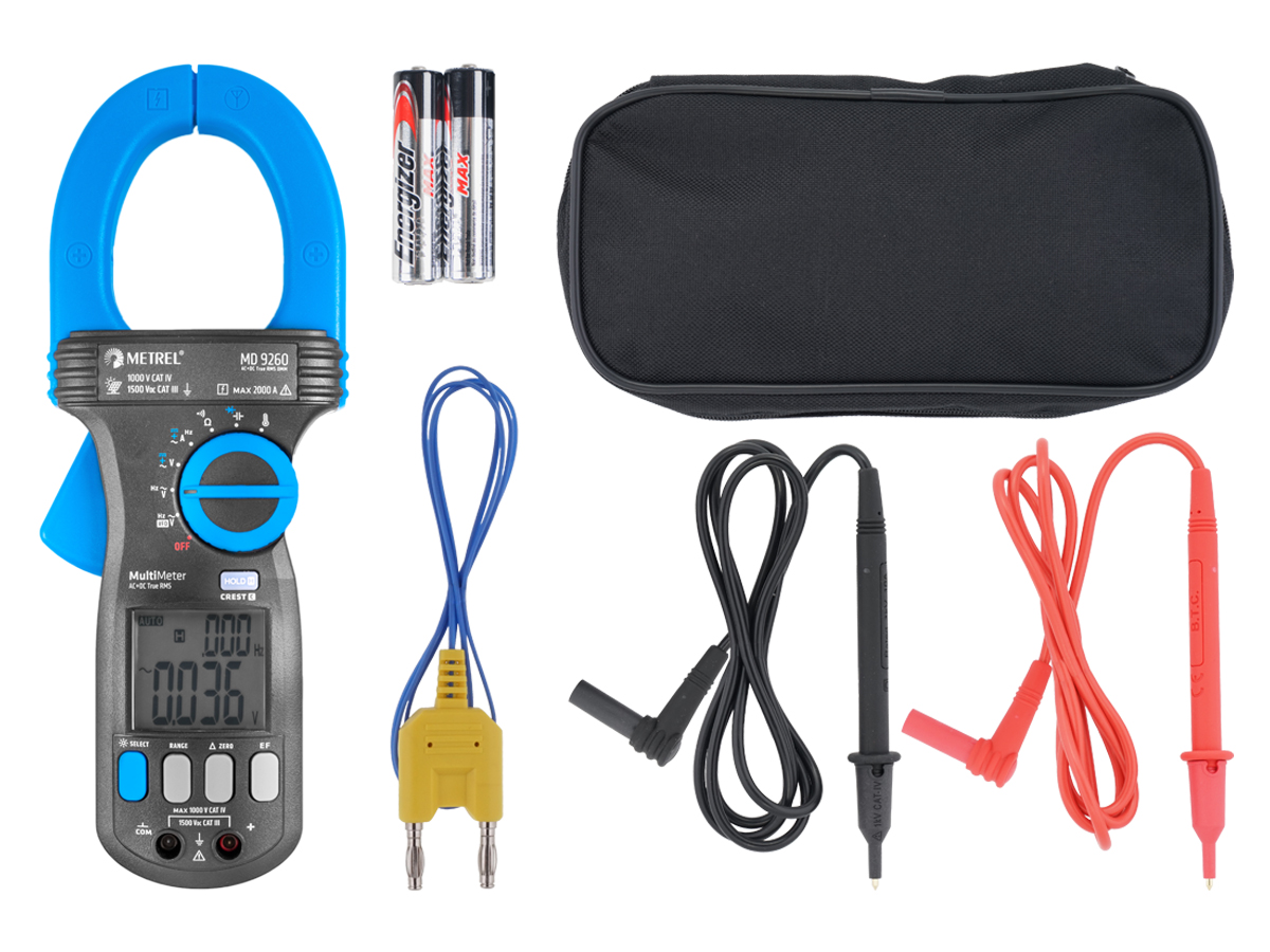 La MD 9260 es el primer instrumento de Metrel que admite mediciones de hasta 1500 V con seguridad CAT III. Su rango de tensiones y su seguridad hacen que sea utilísima en entornos muy exigentes, como plantas solares, parques eólicos u otros entornos de alta potencia de DC. Presenta un rango de corrientes de 2000 A en AC/DC y mide además la resistencia, capacidad, frecuencia y temperatura – En resumen, es una herramienta en formato de multímetro muy completa para su uso en aplicaciones.